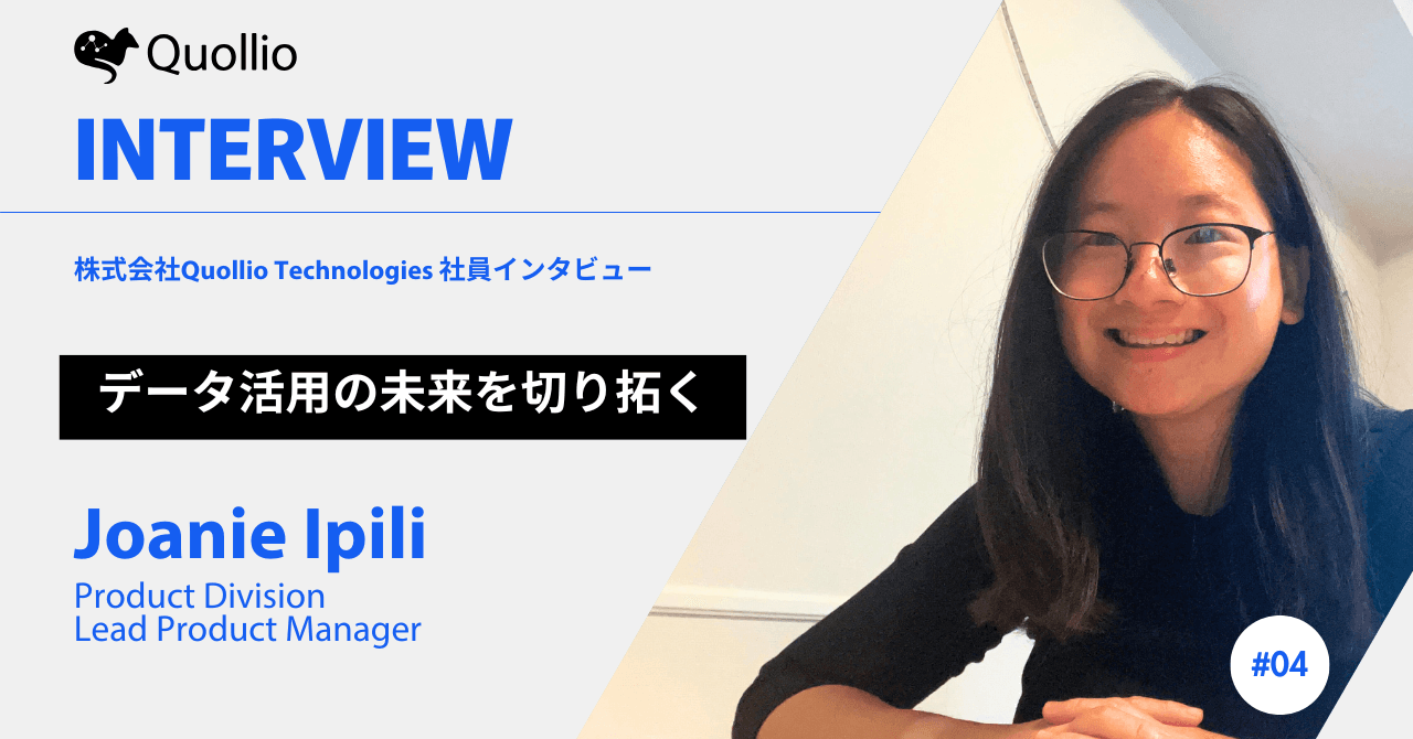 データ活用の未来を切り拓くー Quollioで実現する、ユーザー中心のプロダクト開発とは?ー Quollioでプロダクトマネージャーを務めるJoanieさん。Quollioのミッションに共鳴し、「データサイロを解消し、組織の透明性を高める」というビジョンのもと、日々プロダクトのさらなる成長に挑んでいます。今回のインタビューでは、彼女が感じるQuollioの魅力や現在取り組んでいるプロジェクトについて語っていただきました!<English follows>