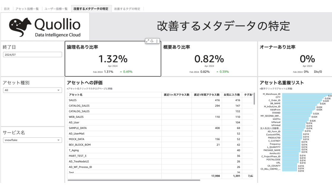 メタデータの品質、プラットフォーム の利用状況、ユーザー固有のデータトレンドを可視化し、より深い洞察を得ることができます。これにより情報に 基づいた意思決定が可能となり、全体的なデータマネジメント・ガバナンス戦略を強化します。